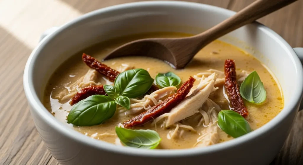 This soup is basically magic in a bowl, and I’m not exaggerating. The first time I made it, my neighbor knocked on the door just to ask what smelled so incredible. It’s got that creamy, tangy, sun-dried tomato situation happening with garlic and herbs, and the whole thing comes together in about 25 minutes. The trick is getting your cream to room temperature first—I learned that the hard way when my cold cream seized up in the hot broth. Not cute. But once you nail it, this becomes one of those recipes you’ll make on repeat. The aroma alone will have people hovering around your kitchen. Trust me, grab the recipe below—it’s dangerously good.