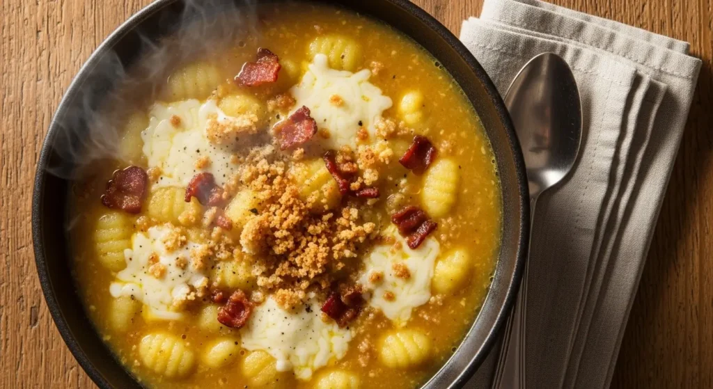 I’m calling it right now—this is the soup that’ll make you look like a fancy restaurant chef when really you just threw stuff in a pot. The caramelized onions are key here (don’t rush them!), and when they meet the crispy bacon, potato gnocchi, and that ridiculous Parmesan breadcrumb topping? It’s basically a hug in a bowl. My sister-in-law asked for the recipe three times before I finally sent it to her. The first time I made it, I definitely burned the onions because I got distracted by TikTok, so learn from my mistakes and stay close to the stove for those first 15 minutes. But seriously, this soup is worth every minute. Grab it below!