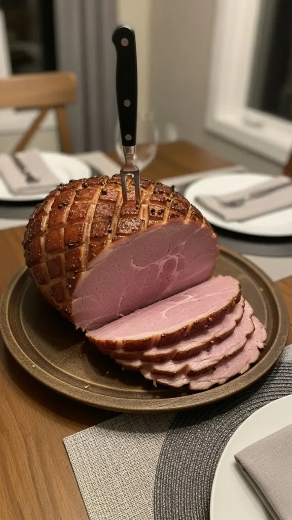 Around the last 30 minutes, remove the foil completely. Crank the heat up to 400°F and baste one more time. This is when that caramelized glazed ham crust forms. Watch it like a hawk during this part—it can go from perfect to burnt in about 3 minutes. Ask me how I know.