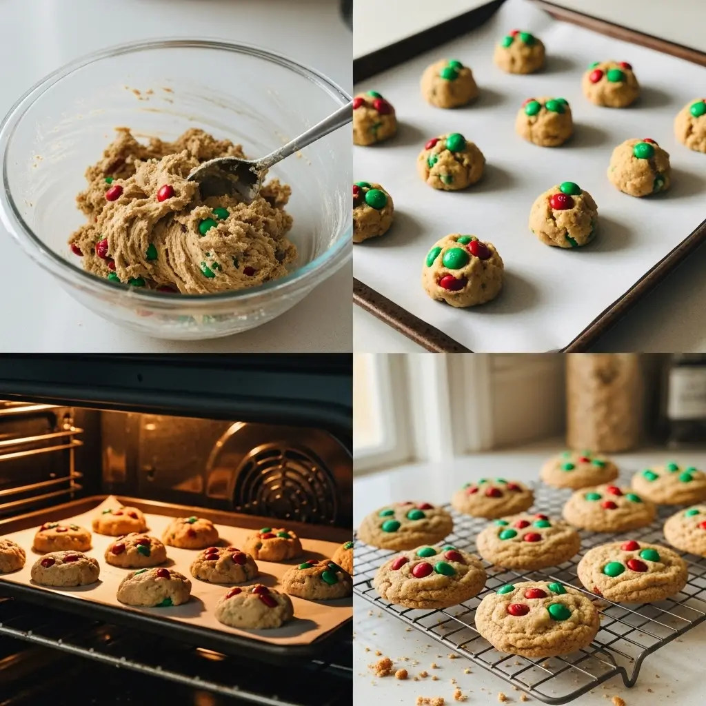 Step 6: Fold in your chocolate chips (and any other festive add-ins like those Christmas M&M cookies ingredients). Use a wooden spoon or spatula for this part. I always steal a few chocolate chips at this point. It’s a cookie-making tradition.