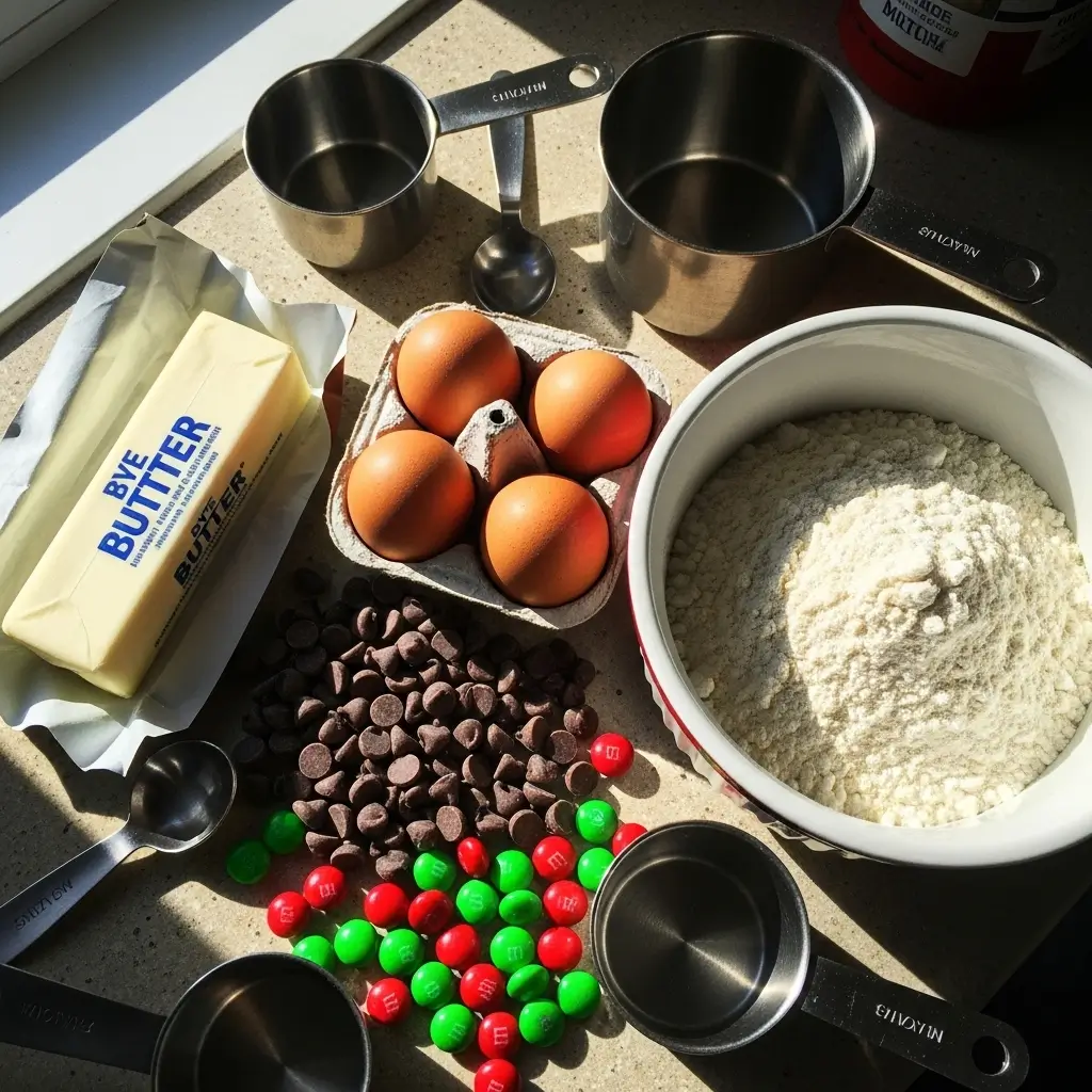 - Optional: Christmas M&Ms, red and green sprinkles, or white chocolate chips