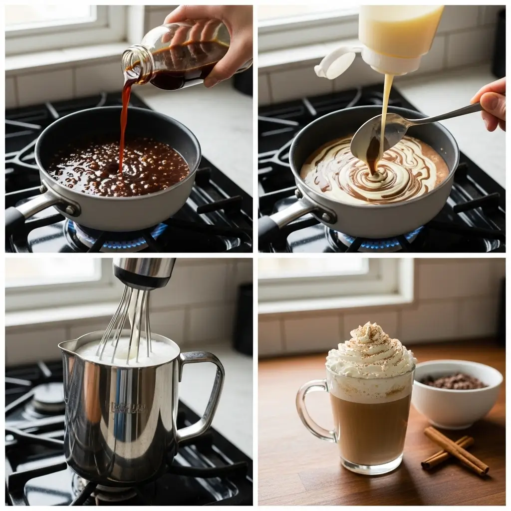Step 5: Pour in the frothed (or just heated) half and half. Give it a gentle stir—oh wait, I forgot to mention—don’t stir too aggressively or you’ll deflate all that nice foam you just made.