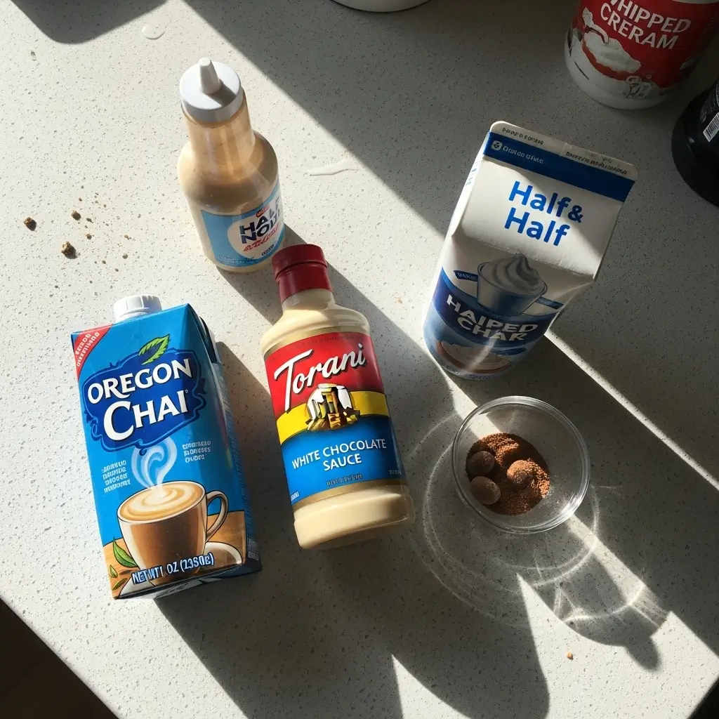 They use Oregon Chai concentrate. Not tea bags. Not some fancy loose-leaf situation. Oregon Chai in the carton from the grocery store. I found mine at Target, but I’ve also seen it at Safeway and Whole Foods. It’s usually in the refrigerated section near the coffee creamers.