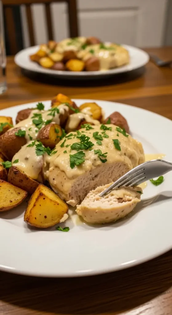 Step 8: Once it’s done, check that the chicken reaches 165°F internally. I use one of those instant-read thermometers because I’m paranoid about undercooked chicken. If the potatoes are fork-tender and the chicken’s cooked through, you’re golden.