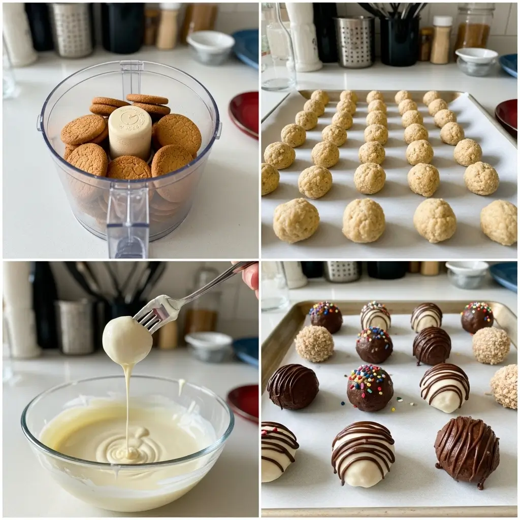 The secret is using store-bought gingersnap cookies. You don’t have to bake anything from scratch. Just blend them up, mix with cream cheese, roll into balls, and dip in chocolate. That’s it. If you can use a food processor and have basic hand-eye coordination, you can make these.