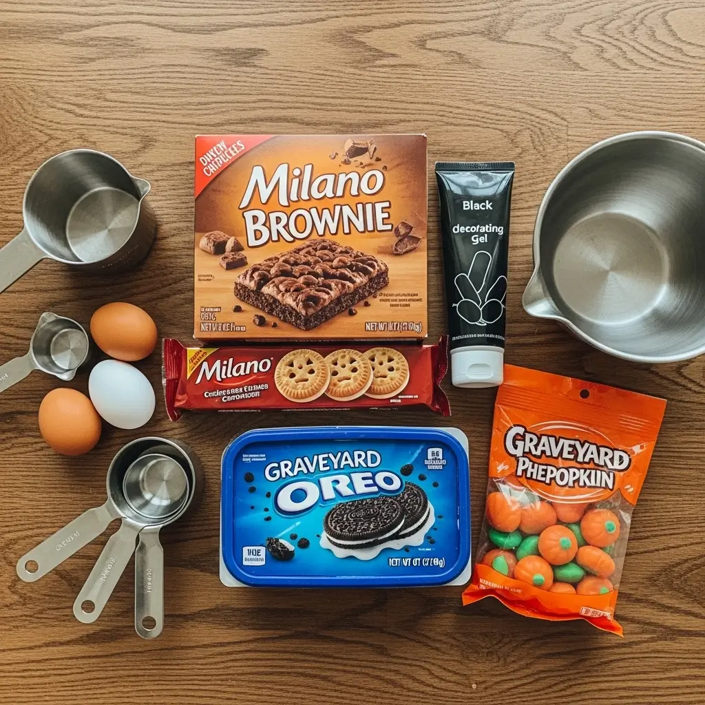 Here’s what you need for this graveyard brownies recipe. Nothing fancy, I promise:
