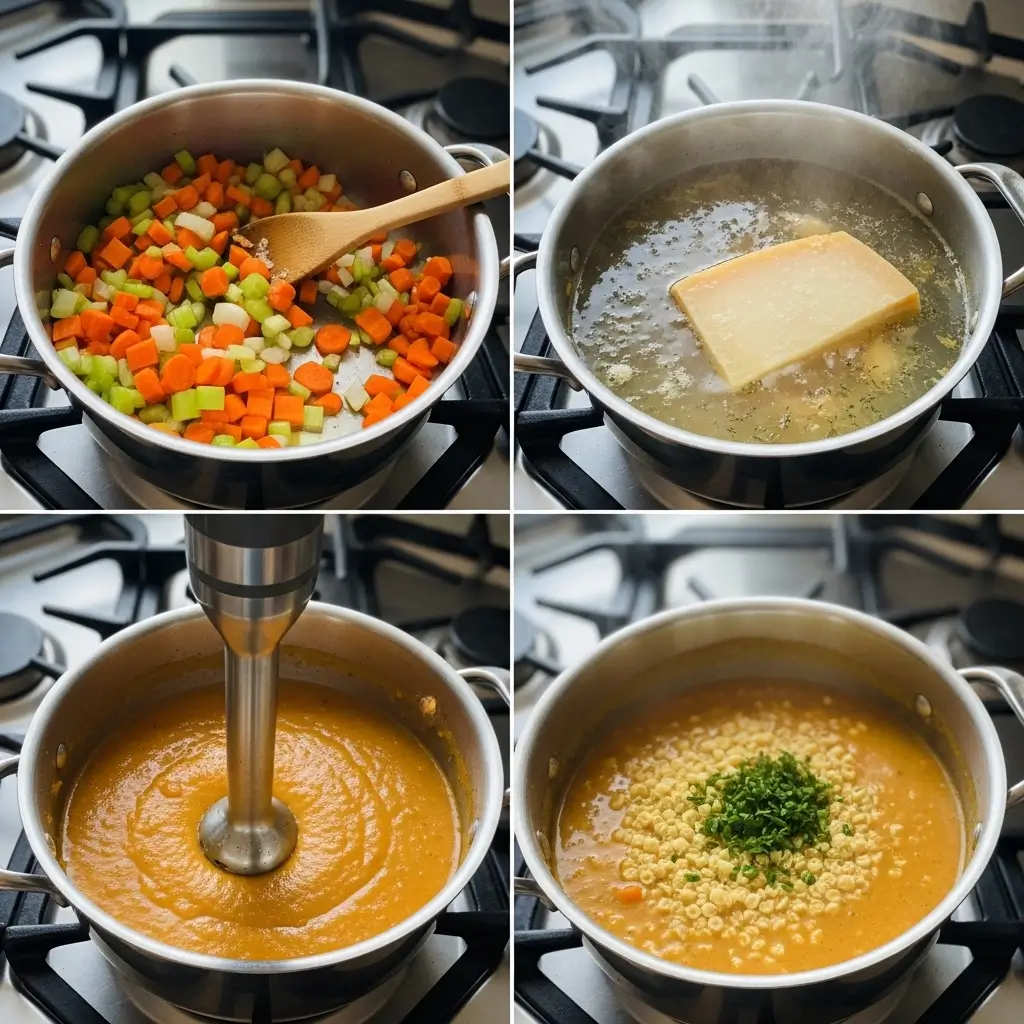 Now here’s the thing—I had no idea what made it so different from regular soup until she told me the secret. You BLEND half the vegetables back into the broth. I know, sounds weird, but it creates this velvety, thick base that’s completely different from watery chicken noodle soup. Game changer.