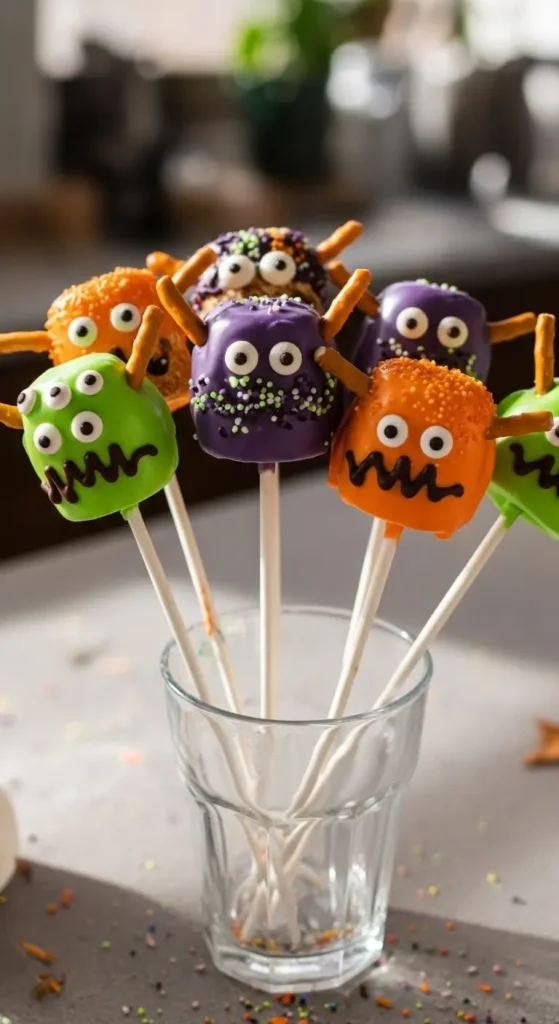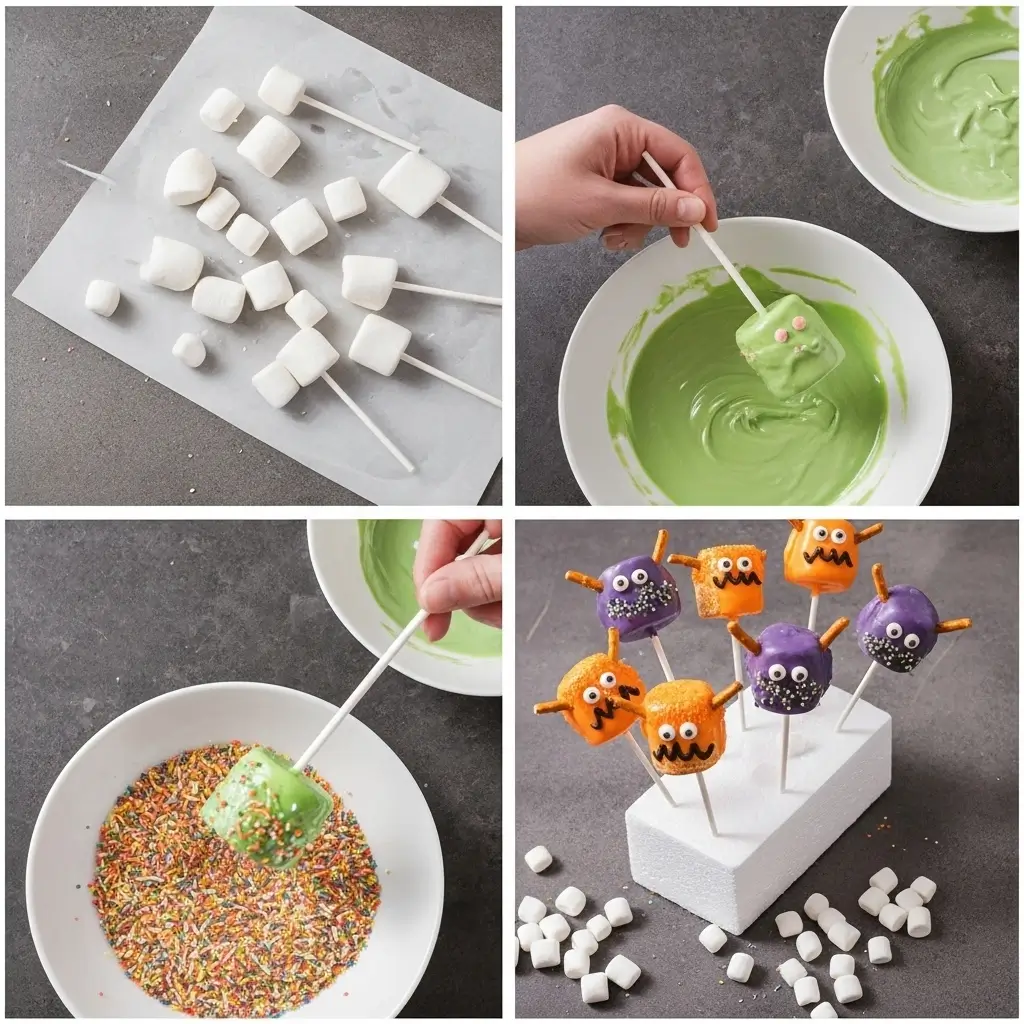 These monster marshmallow pops saved my sanity when I needed to bring something to the school party. They look impressive but take maybe 20 minutes start to finish once you get in a rhythm. Nobody needs to know how easy they actually were.