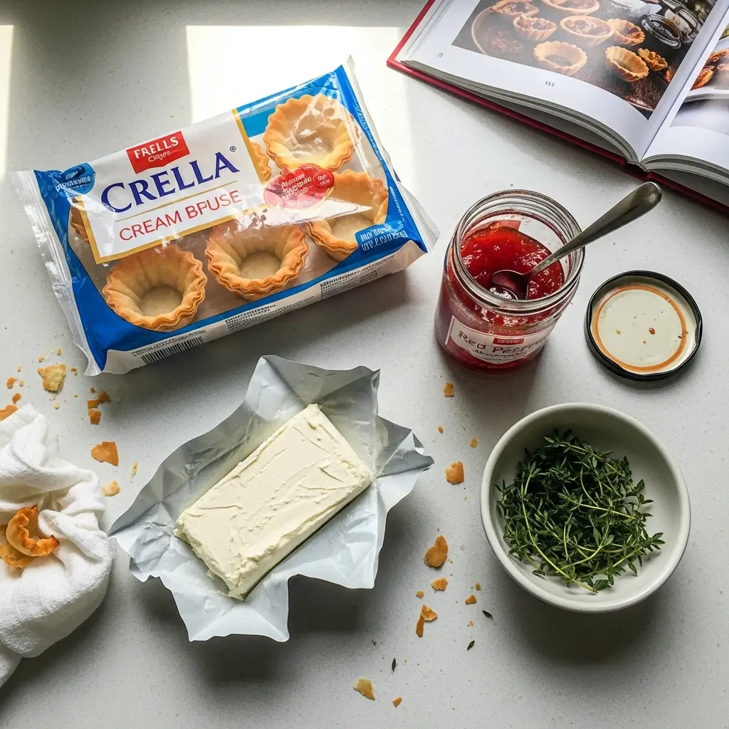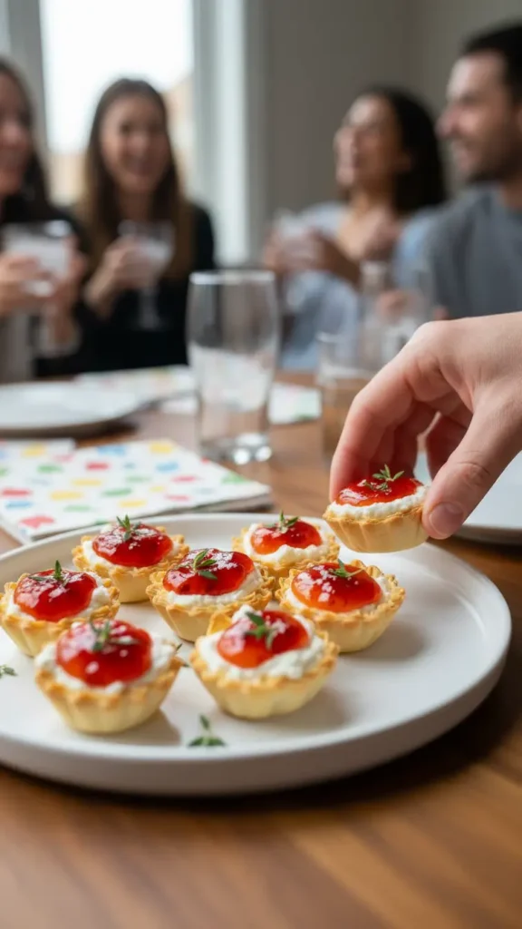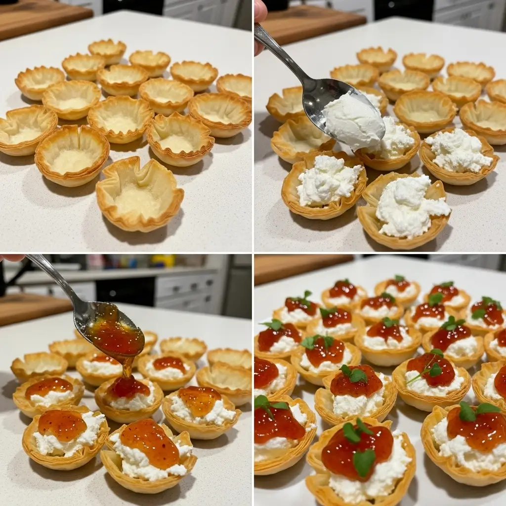 If you have fresh herbs lying around, stick a tiny sprig of thyme or rosemary on top. Literally takes 5 seconds and suddenly your phyllo cups pepper jelly creation looks like it came from a catering company.