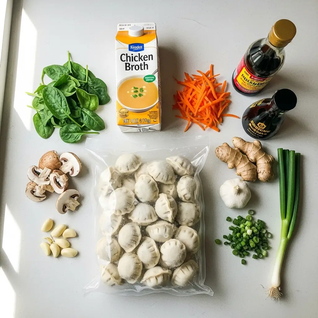 Here’s the thing about this recipe—it’s basically a shortcut soup disguised as something fancy. You’re using frozen potstickers (I always have those Trader Joe’s chicken ones in my freezer), some basic vegetables, chicken broth, and a few aromatics. That’s it. No complicated techniques, no hard-to-find ingredients.