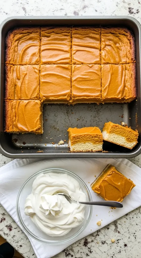 Okay so I need to tell you about this pumpkin gooey butter cake before I forget because my brain is currently mush from eating too much of it. Like, I made this three days ago and there’s literally one piece left and I’m hiding it in the back of the fridge behind the leftover spaghetti so my kids won’t find it.