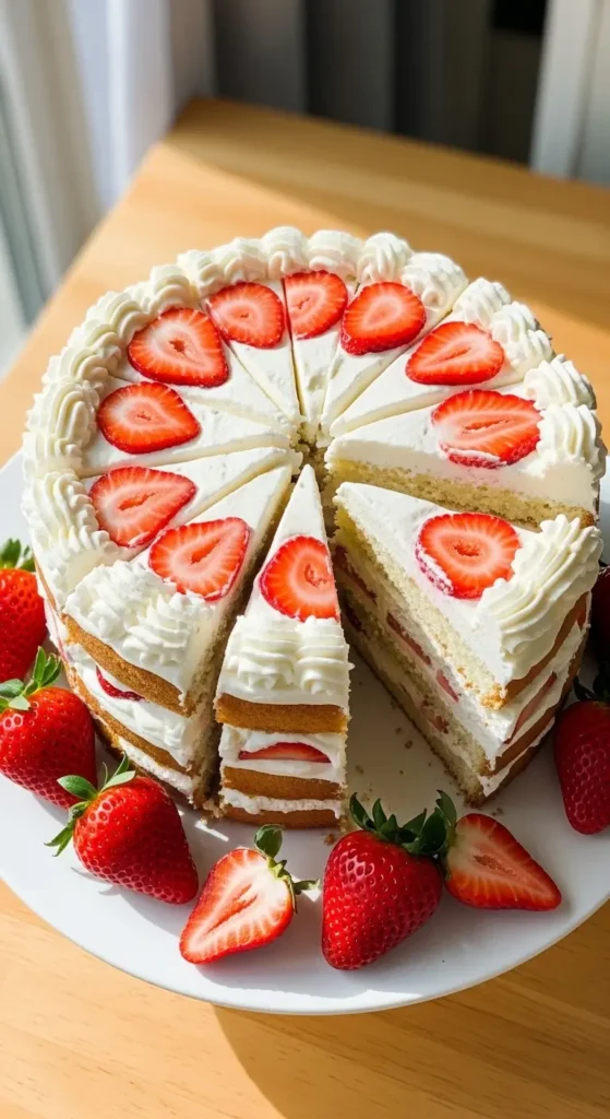 Look, I’m gonna be honest—most layer cakes are too heavy for summer. But this one is basically a giant version of those classic strawberry shortcake biscuits, except in cake form. It’s lighter, fluffier, and you can actually eat a whole slice without feeling like you need a nap after.