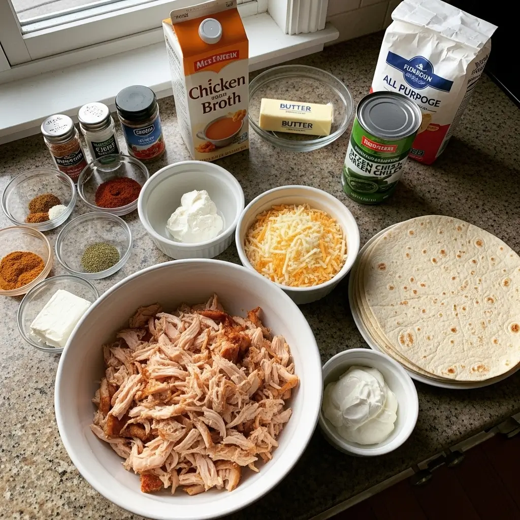 Look, I’m gonna be honest. The secret to amazing white chicken enchiladas with sour cream is that creamy sauce. It’s not the regular red enchilada sauce—this is a white sauce made with butter, flour, chicken broth, and sour cream that’s just… incredible. It’s rich and tangy and coats everything perfectly.